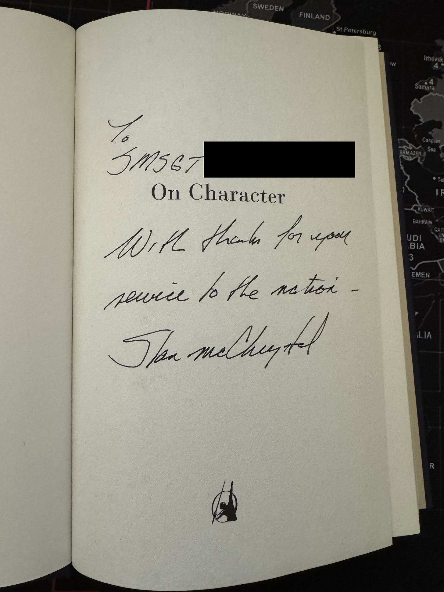 There was a lot of snow this week, so spent a lot more time off the computer and more time hanging out with my wife and kids. It also allowed for more reflection time. This week I reopened the book On Character by General Stanley McChrystal. Most people know him through his work on Team of Teams, but few know of his newest book. I even had the opportunity to get a signed copy from him.